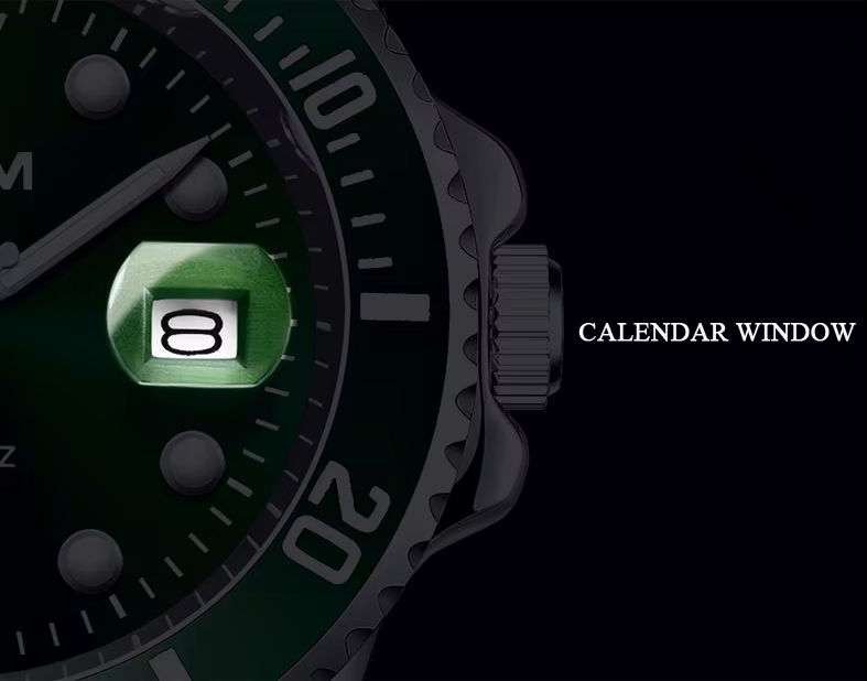 • ✅ Dial: Green with luminous hour markers and hands for low-light visibility
