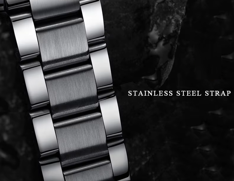 • ✅ Strap: Stainless steel with butterfly double snap clasp