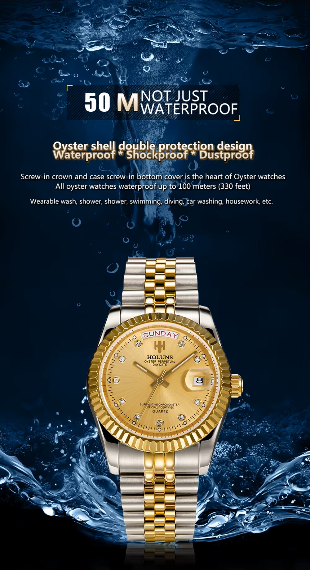 - Water Resistant (50M): Suitable for daily wear, including handwashing and light splashes.