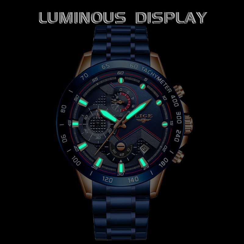 The LIGE 9982 Men’s Quartz Watch is a bold fusion of precision engineering and executive style. Designed for professionals who value both form and function, this timepiece features a six-hand chronograph layout with three sub-dials, offering versatile performance in a sleek alloy case.