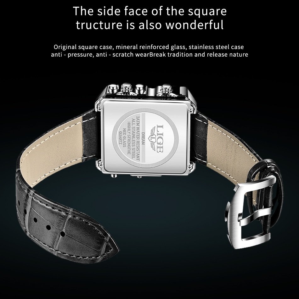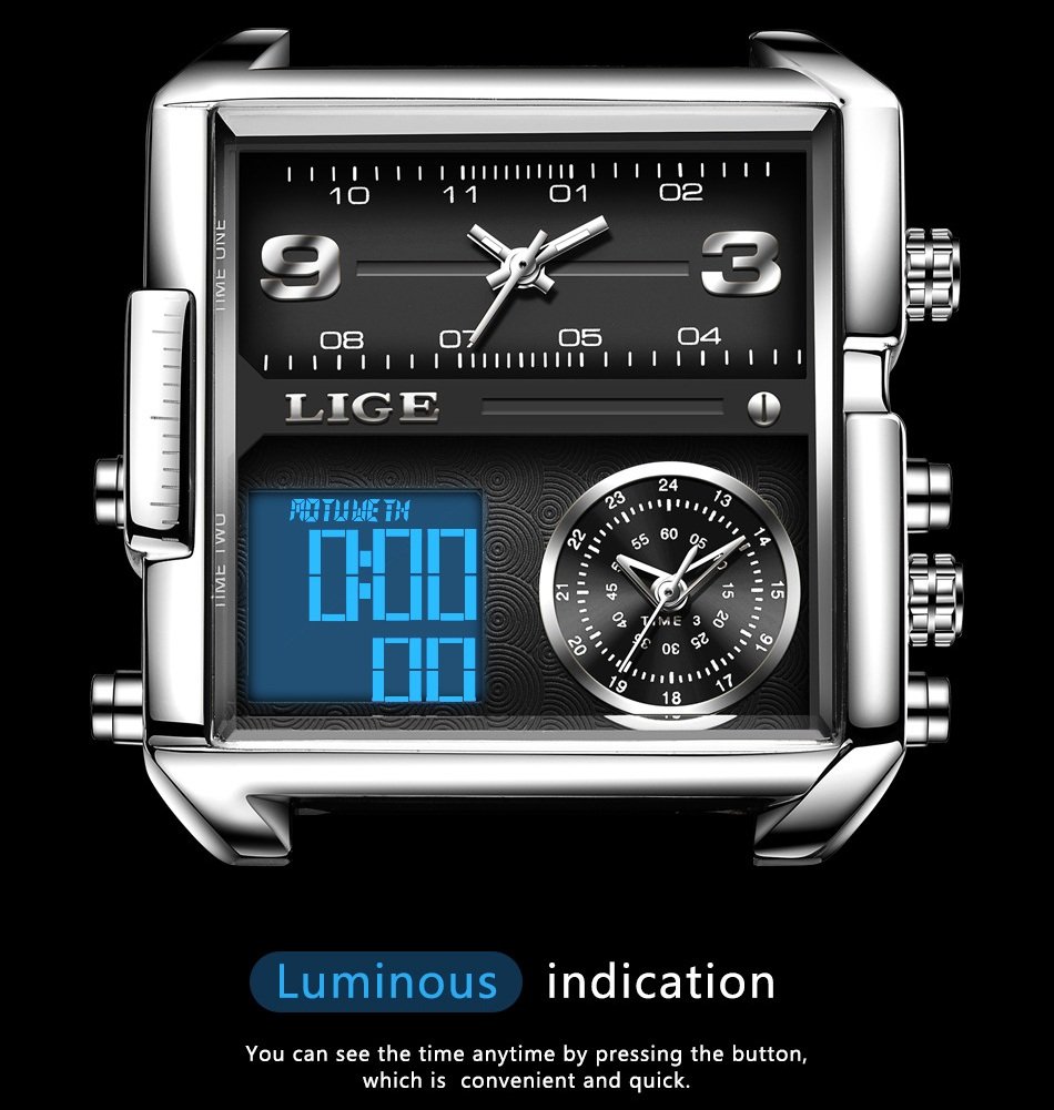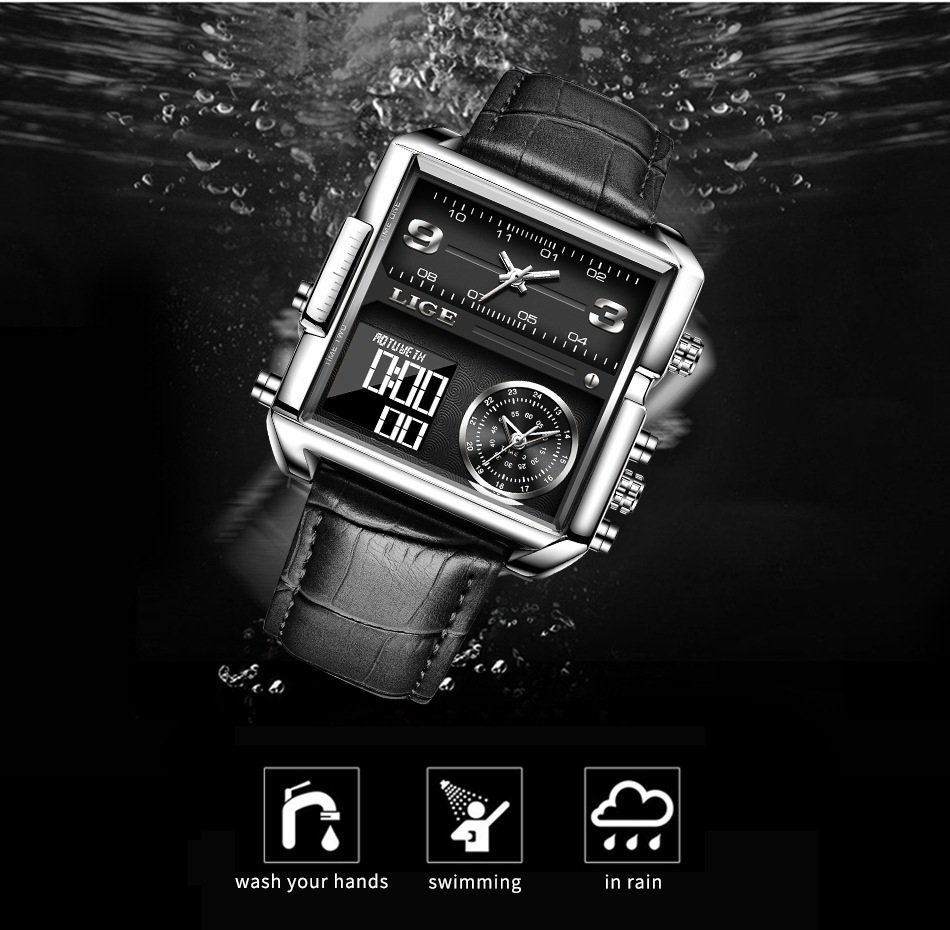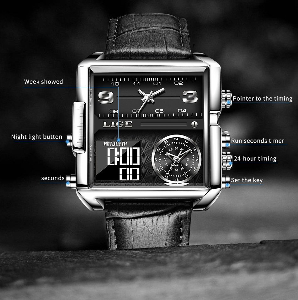 Step into modern sophistication with the LIGE Dual Display Men’s Watch, a bold fusion of analog elegance and digital precision. Designed for leisure and everyday wear, this multi-functional timepiece offers a sleek rectangular dial, genuine leather or mesh strap options, and a full suite of smart features.