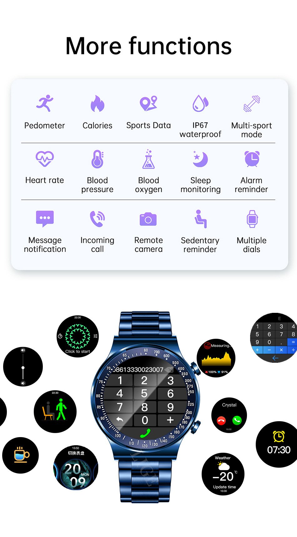 - 💓 Health Monitoring Suite: Track heart rate, blood pressure, and blood oxygen levels with built-in sensors and app integration.