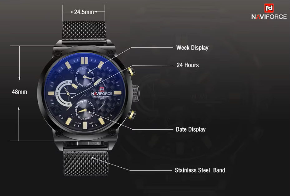 - Premium Build: Stainless steel case and mesh band for durability and comfort