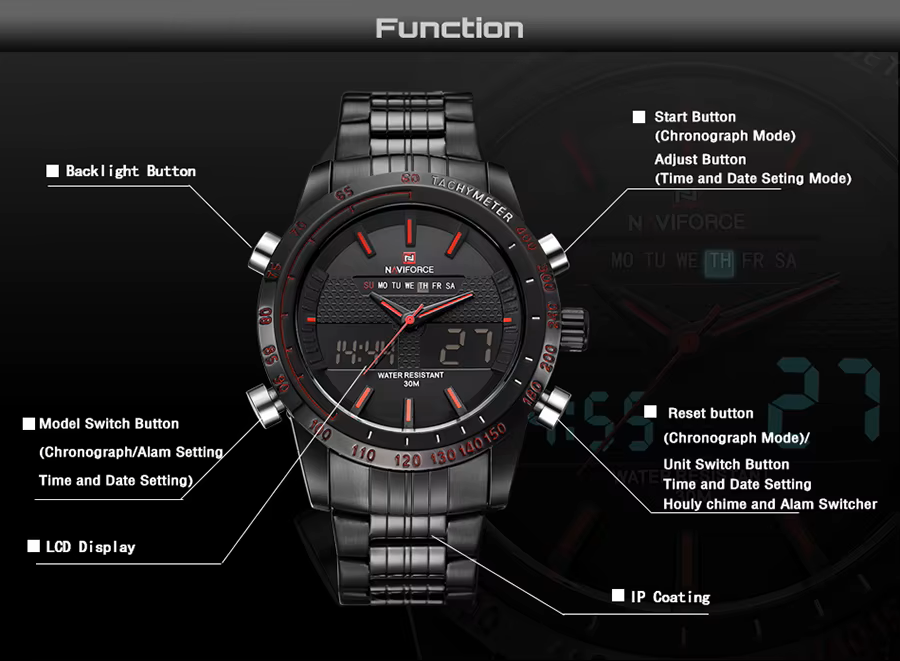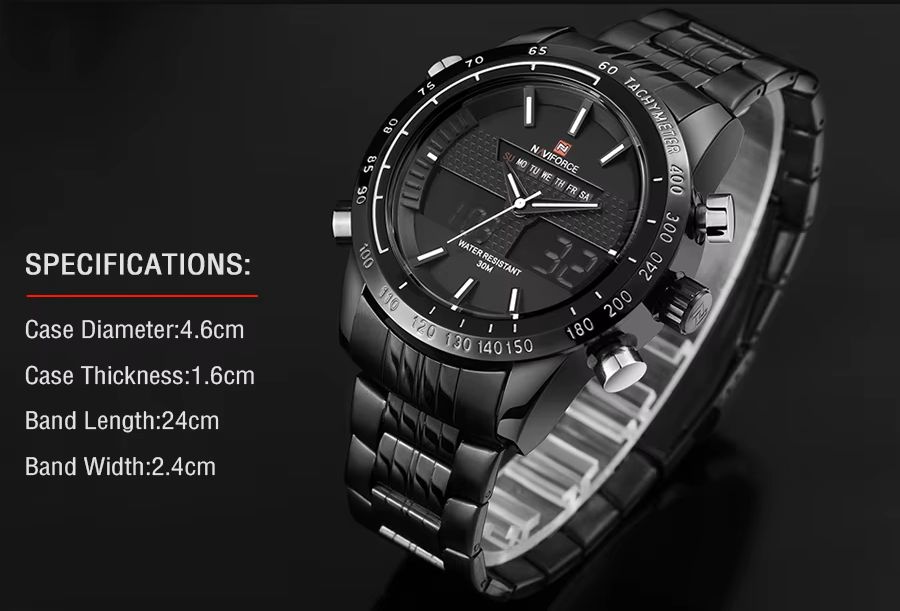 Engineered for precision and built for style, the NAVIFORCE NFBOX005 is a bold fusion of analog elegance and digital functionality. With a rugged stainless steel build and dual-core quartz movement, this sports wristwatch delivers reliable performance whether you’re on the move or off the grid.