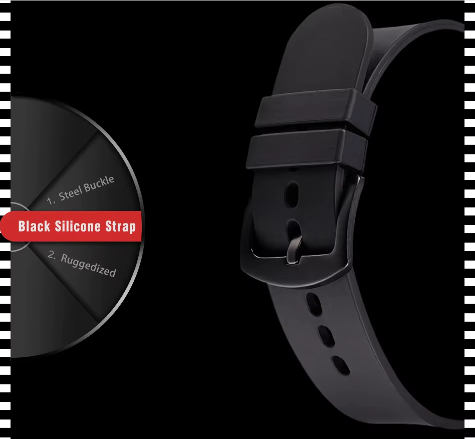 - Comfortable Fit: Ruggedized black silicone strap with steel buckle for secure and stylish wear.