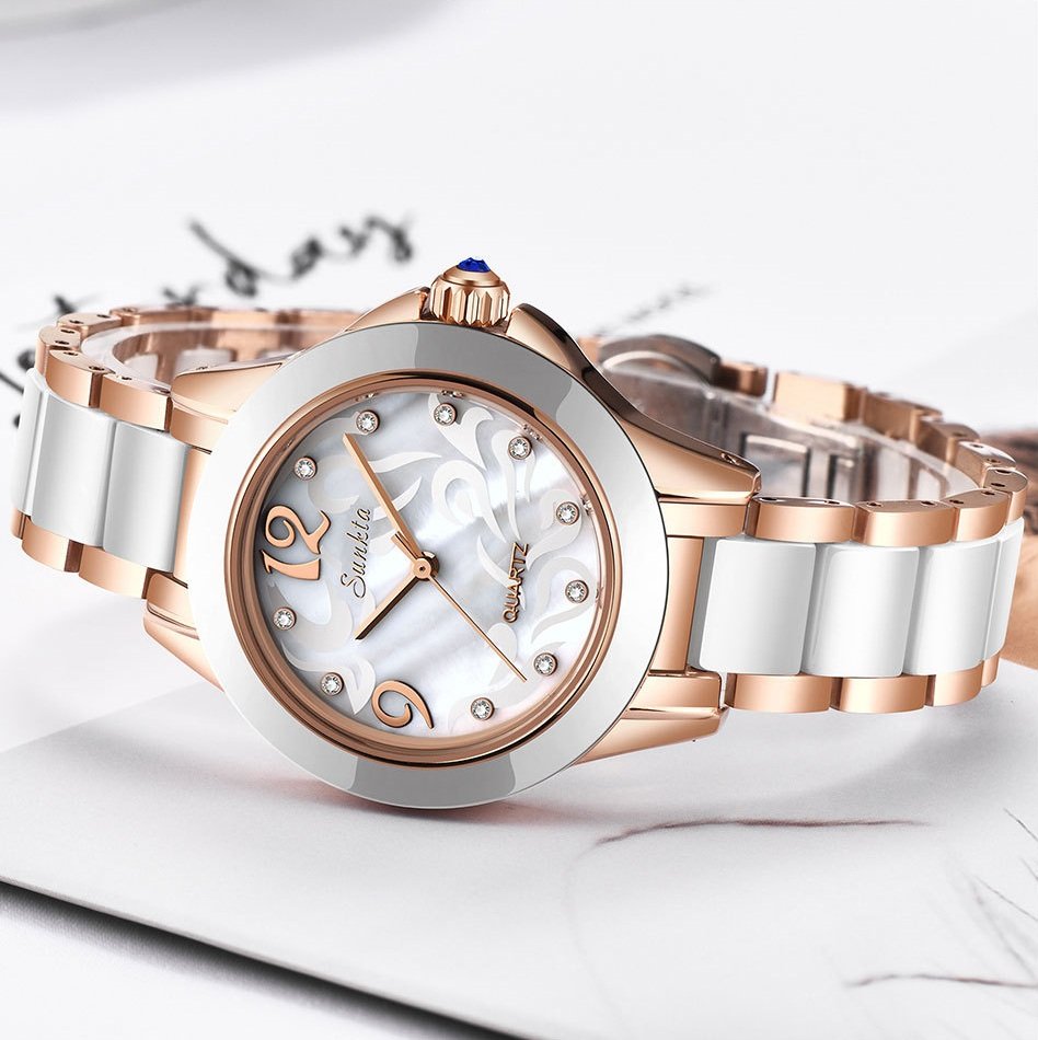 Grace meets precision in the SUNKTA Ceramic Luxury Watch, a high-end timepiece crafted for women who appreciate timeless elegance and modern craftsmanship. Featuring a mother-of-pearl dial with swirling motifs, crystal hour markers, and stylized numerals, this watch is both a fashion statement and a reliable companion.